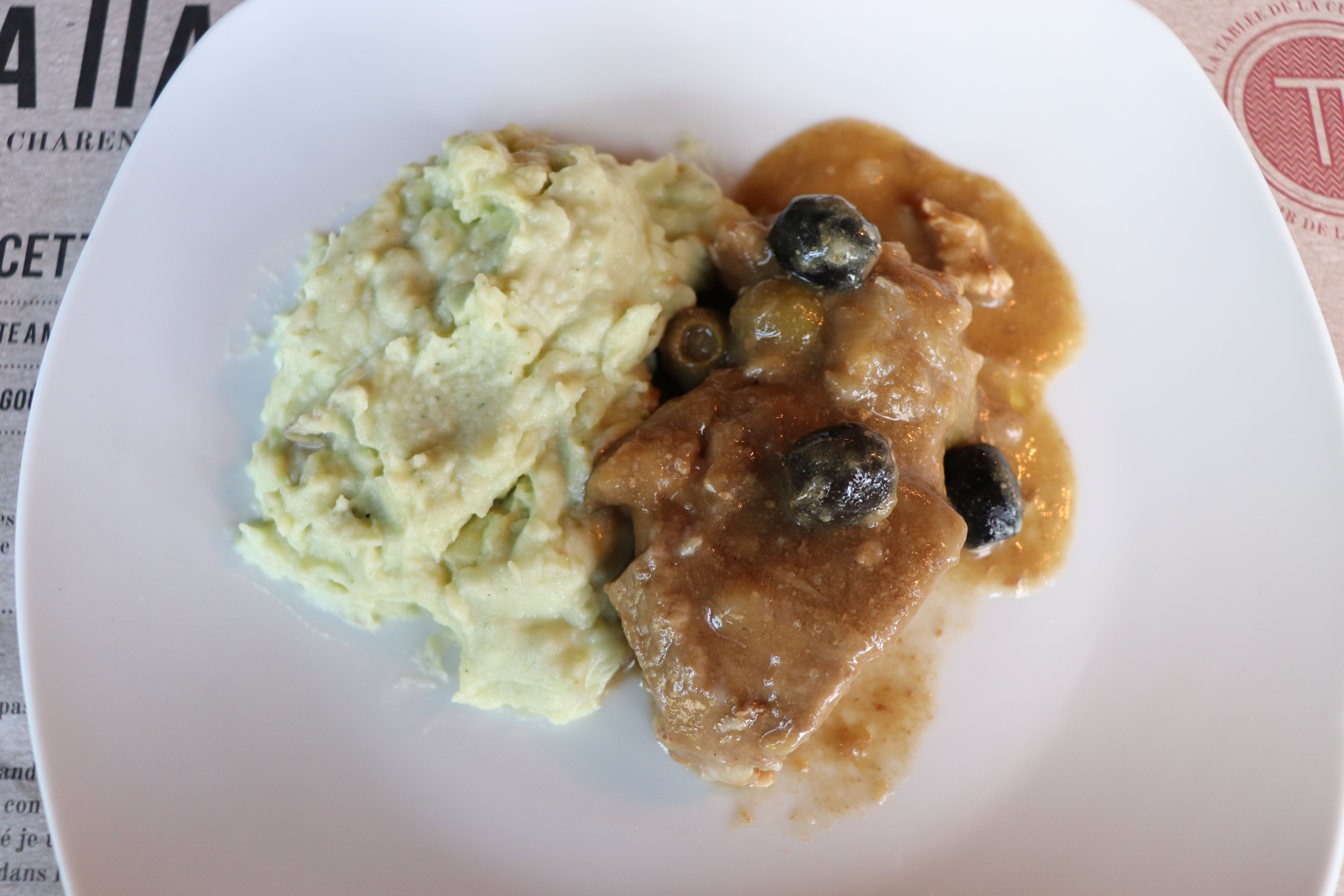 Ingrédients : Pomme de terre 40%, Porc origine France 30%, Crème légère (Crème 98,2%, amidon transformé, émulsifiants : mono et diglycérides d'acide gras, épaississants : pectine- farine de graines de caroube), Olive vertes et noires (olives, eau, sel, acidifiant : acide citrique, acidifiant: acide lactique, antioxydant: acide ascorbique, stabilisant :gluconate ferreux), Oignons, beurre (crème pasteurisée, ferments lactiques), Huile d'olive, Farine de BLE, Fond brun(Fécules, sel iodé, arômes, farine de BLE, sucre, graisse de boeuf, épaississant (gomme guar), sel, colorant (caramel ordinaire), oignon, extrait de levure, jus de cuisson de viande de boeuf 1,3 %, sirop de glucose, tomate, acidifiant (acide citrique), poivre blanc, antioxydant (extrait de romarin), extrait d'ail, extrait de thym), Sel, Basilic, Poivre, Persil, Noix de muscade, Acidifiants : lactate de sodium (E325), diacetate de sodium (E262ii).